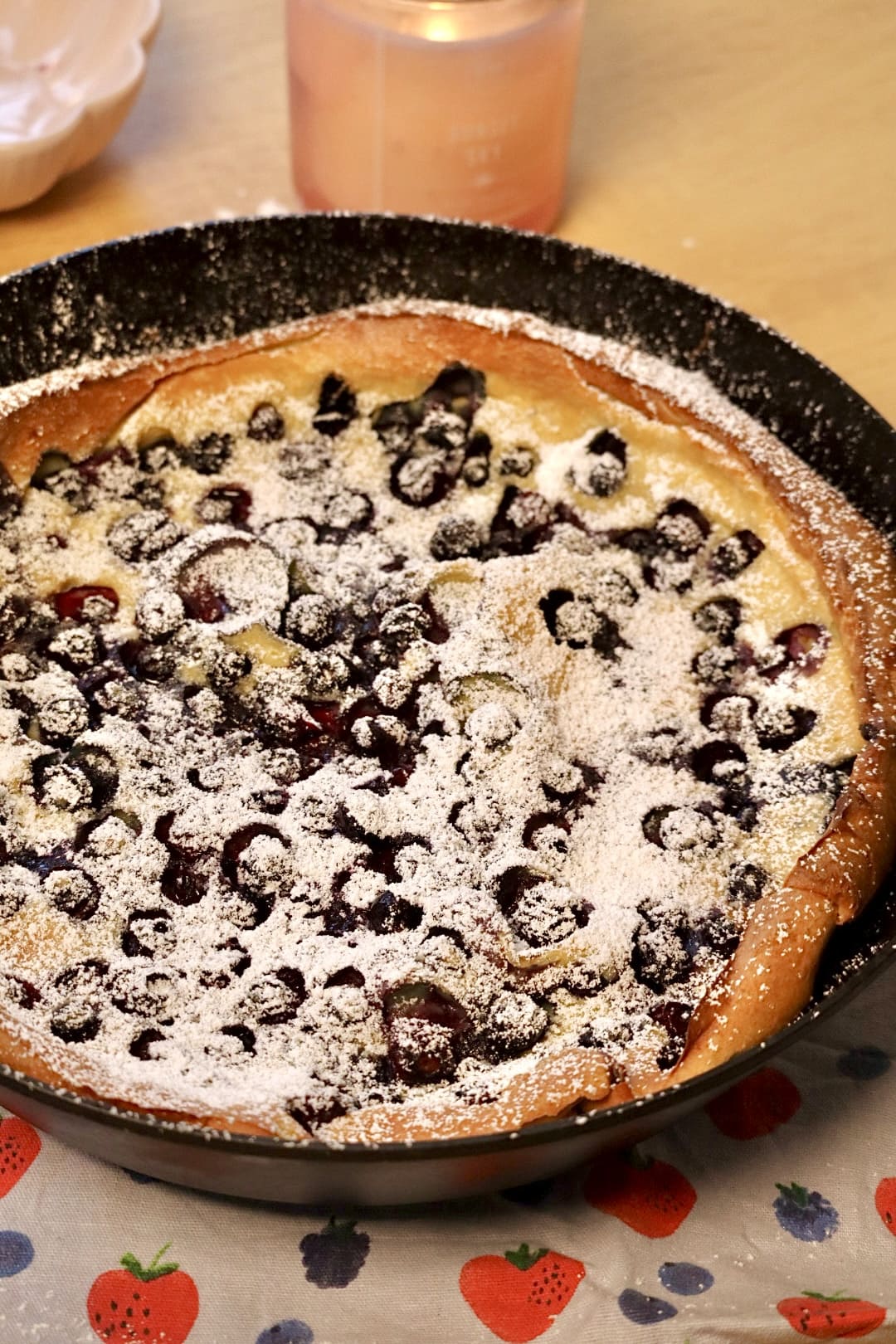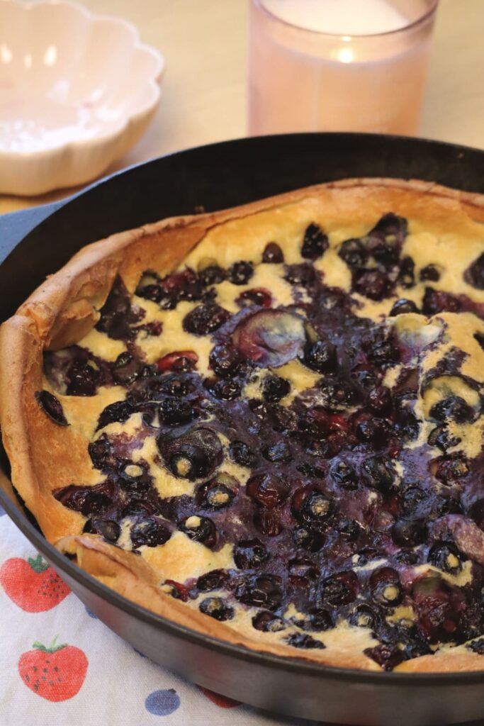 This Dutch baby is baked with juicy blueberries, but it’s incredibly versatile. You can use almost any fruit or berry you love, making it perfect year-round for breakfast, brunch, or even dessert.