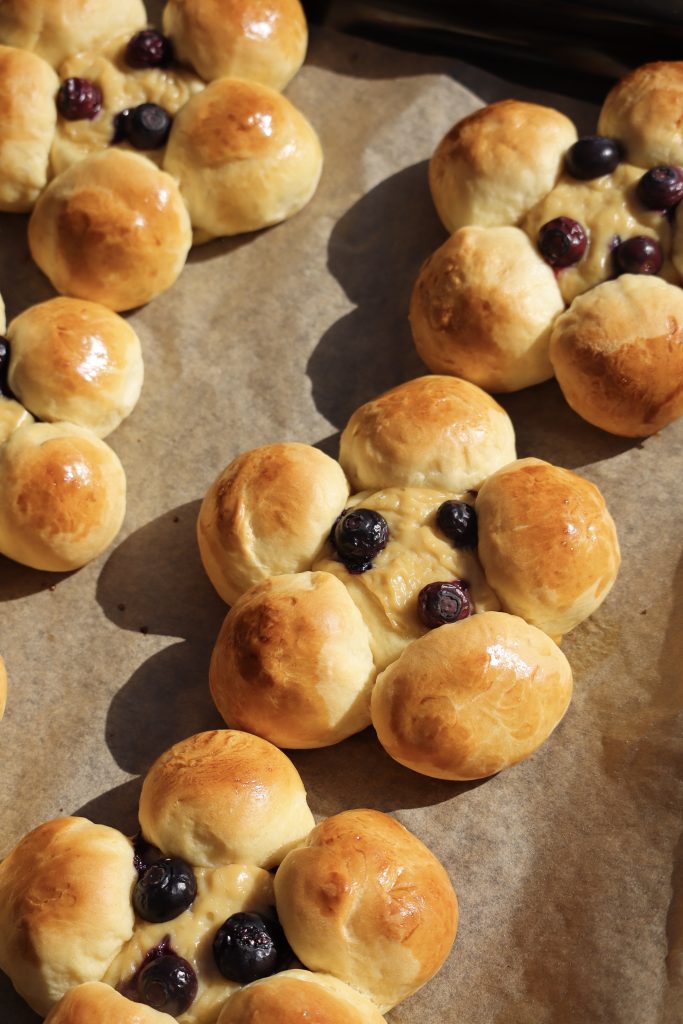 Not only do these buns look stunning, but they taste absolutely heavenly too. The delicate flower shape adds a fun, creative touch to your baking repertoire, while the combination of vanilla and blueberry offers a burst of fresh, fruity flavor with every bite. Plus, the addition of homemade vanilla pudding makes them irresistibly creamy on the inside.