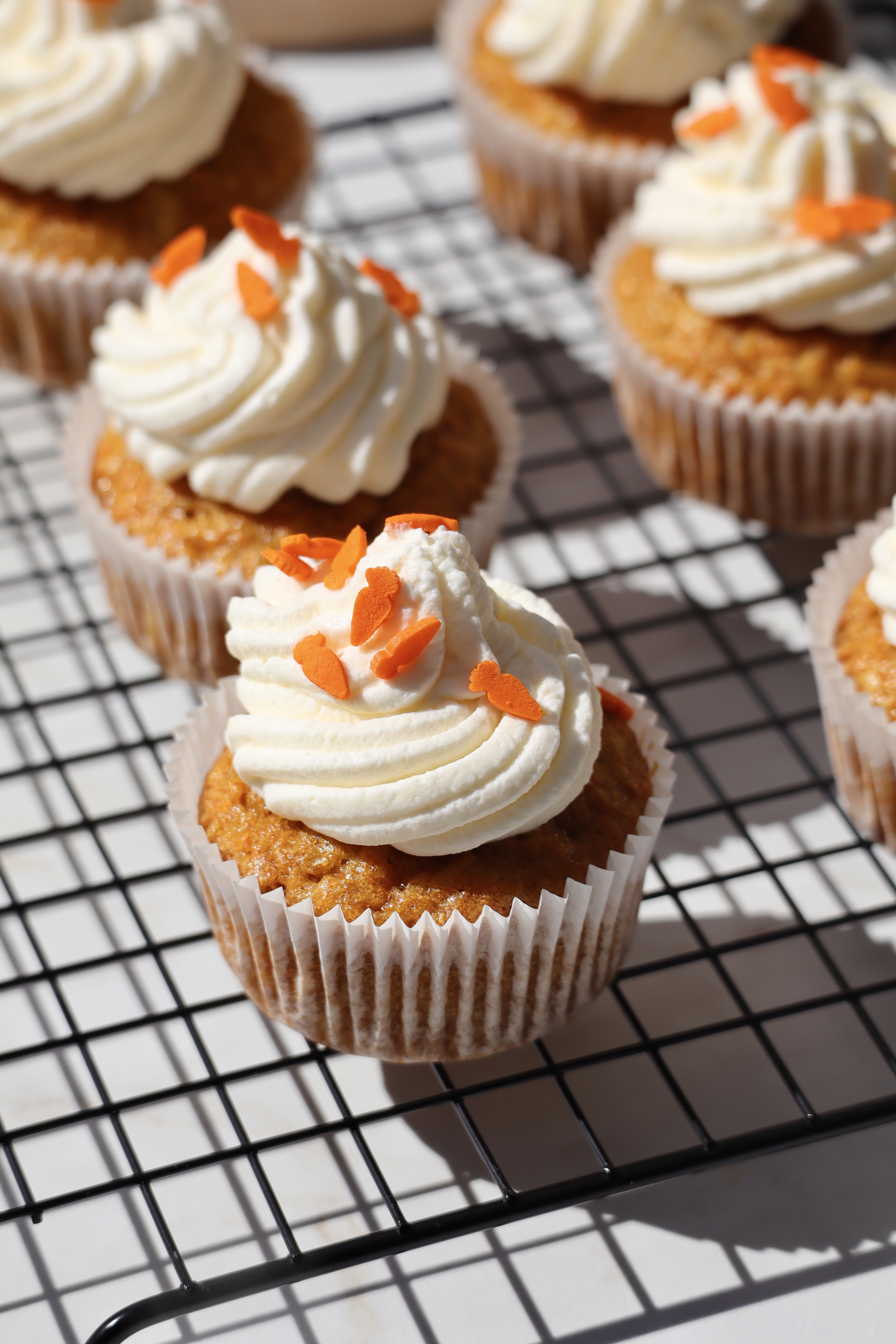 • Cream cheese frosting – The rich, tangy cream cheese frosting perfectly complements the sweet and spiced cupcakes.