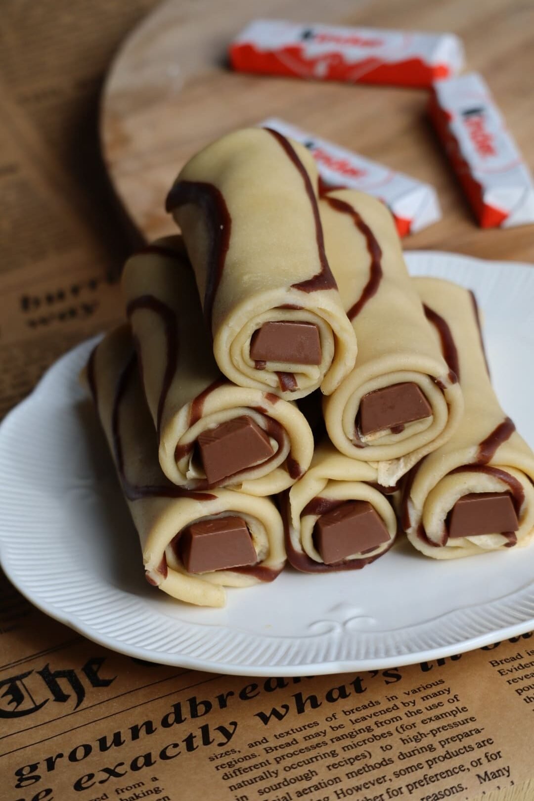 - Kinder Chocolate Bars: Melt inside the warm crêpes, creating a creamy, chocolate-filled center.