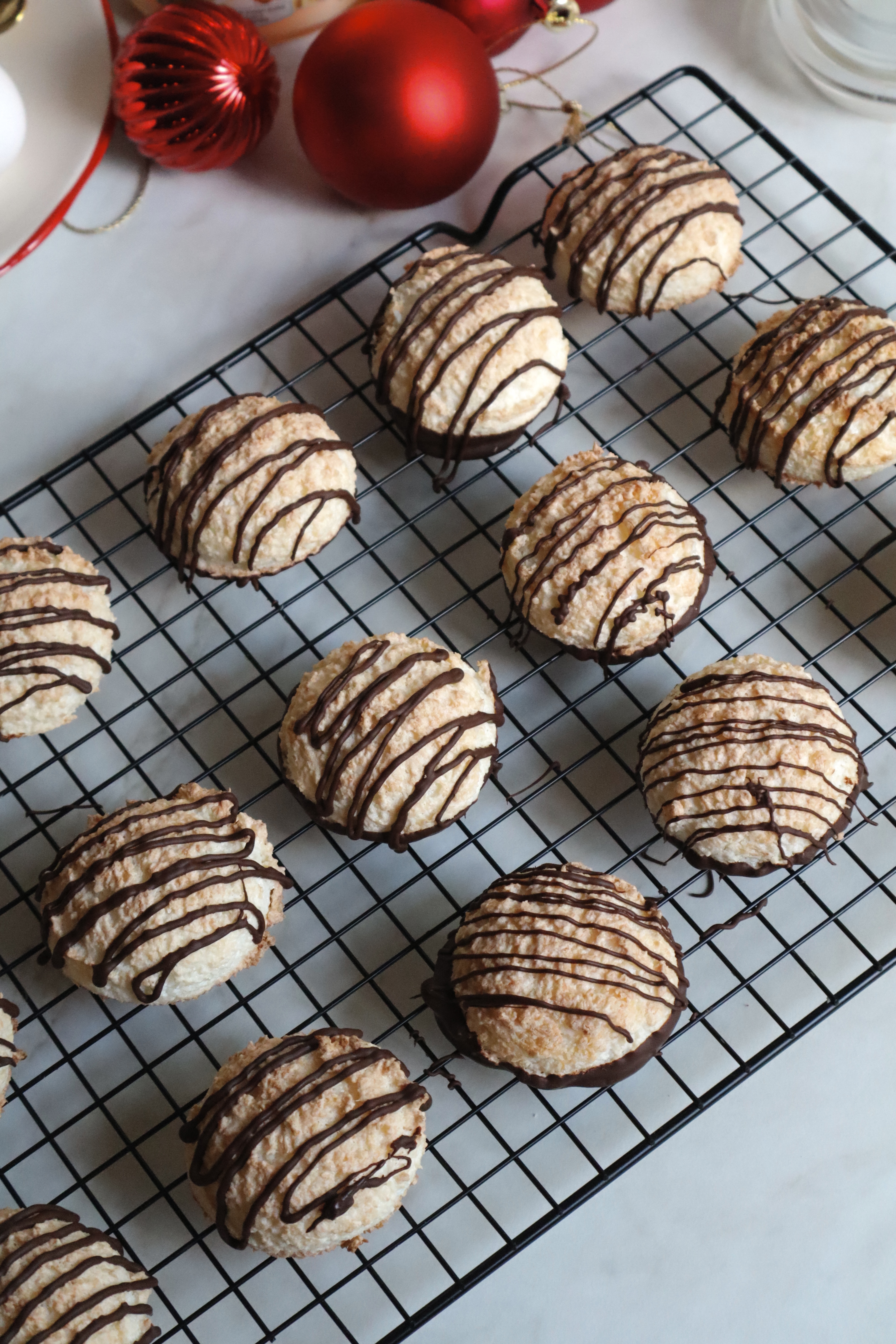 - Melt your favorite chocolate (dark, milk, or white) over a double boiler or in the microwave. Then, either dip the bottom of each macaroon into the chocolate or use a spoon to drizzle chocolate across the top (or both). The chocolate adds a lovely contrast to the coconut and gives these treats an extra level of indulgence.