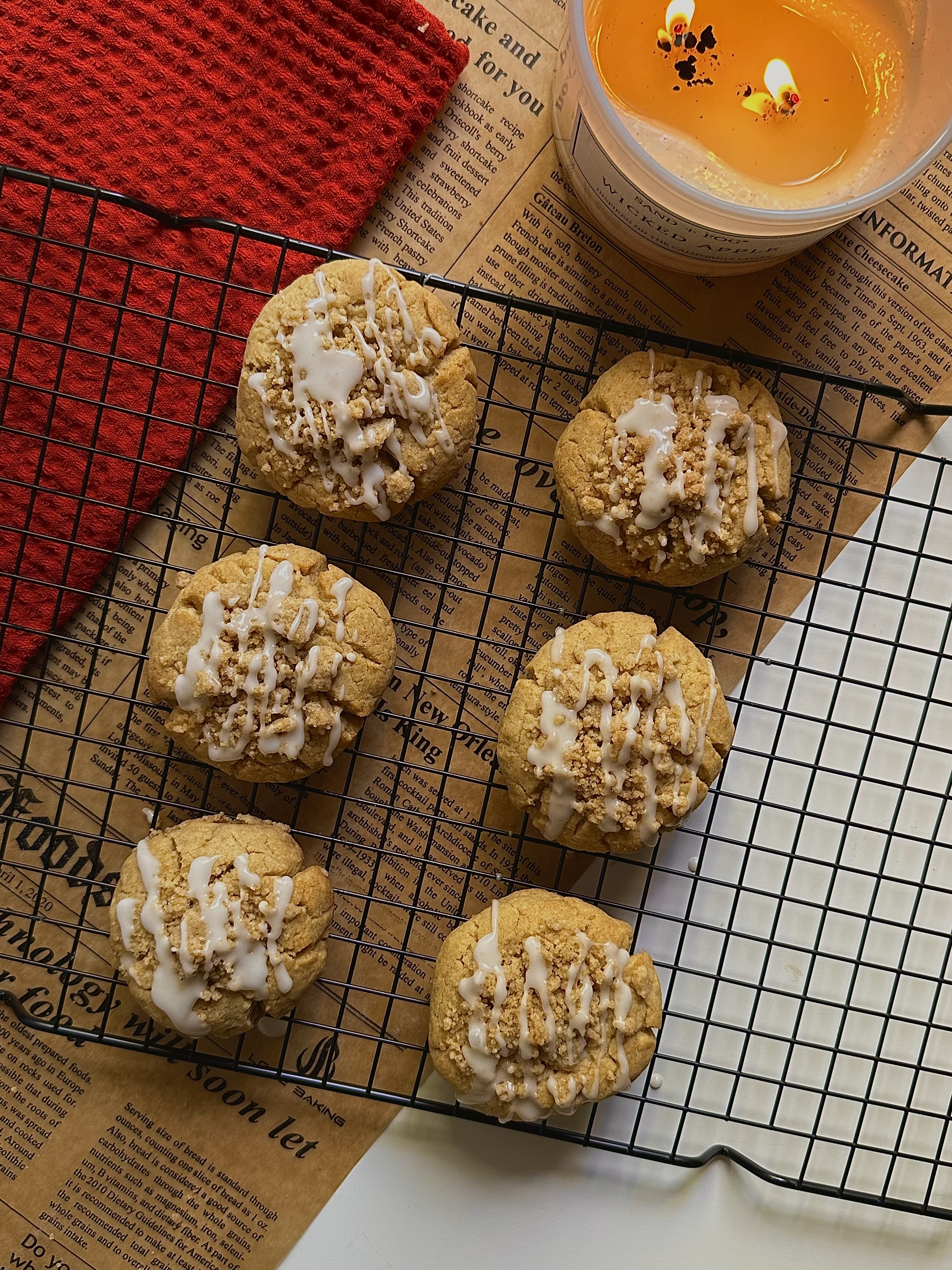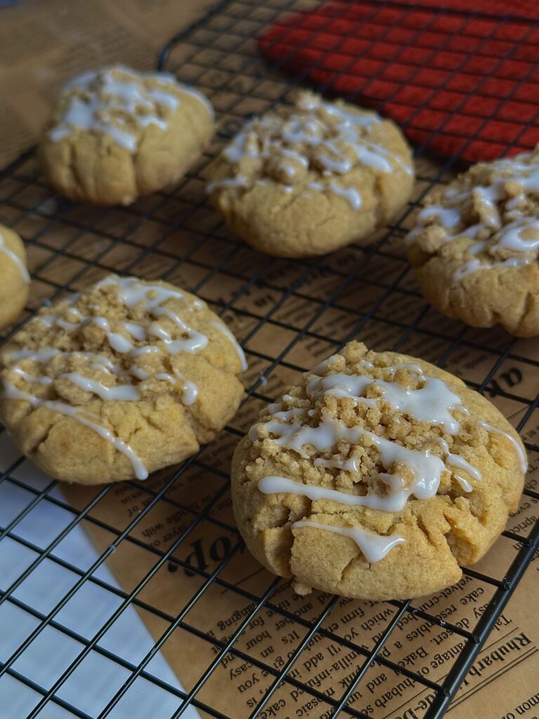 These Coffee Cake Cookies combine the rich flavors of classic coffee cake into a soft, chewy cookie, complete with a buttery streusel topping and a sweet vanilla drizzle. They’re perfect for cozy mornings or an indulgent snack anytime! These cookies combine the warm, comforting flavors of coffee cake in a bite-sized form. The cinnamon gives the cookies a cozy fall feel, while the buttery streusel topping adds the perfect amount of crunch. They’re ideal for pairing with your morning coffee or as an afternoon snack. Plus, they’re super easy to make and look stunning with a drizzle of sweet vanilla icing!