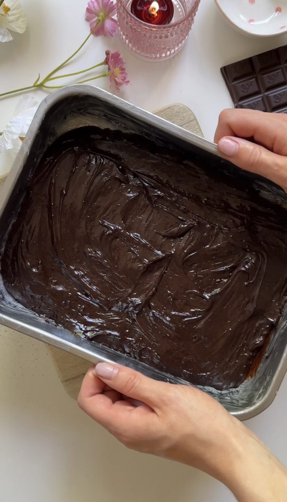 - Prepare to Bake: Pour your batter into an 20 cm x 20 cm (8×8 inch) baking tray lined with parchment paper or greased with some butter. Smooth out the top.