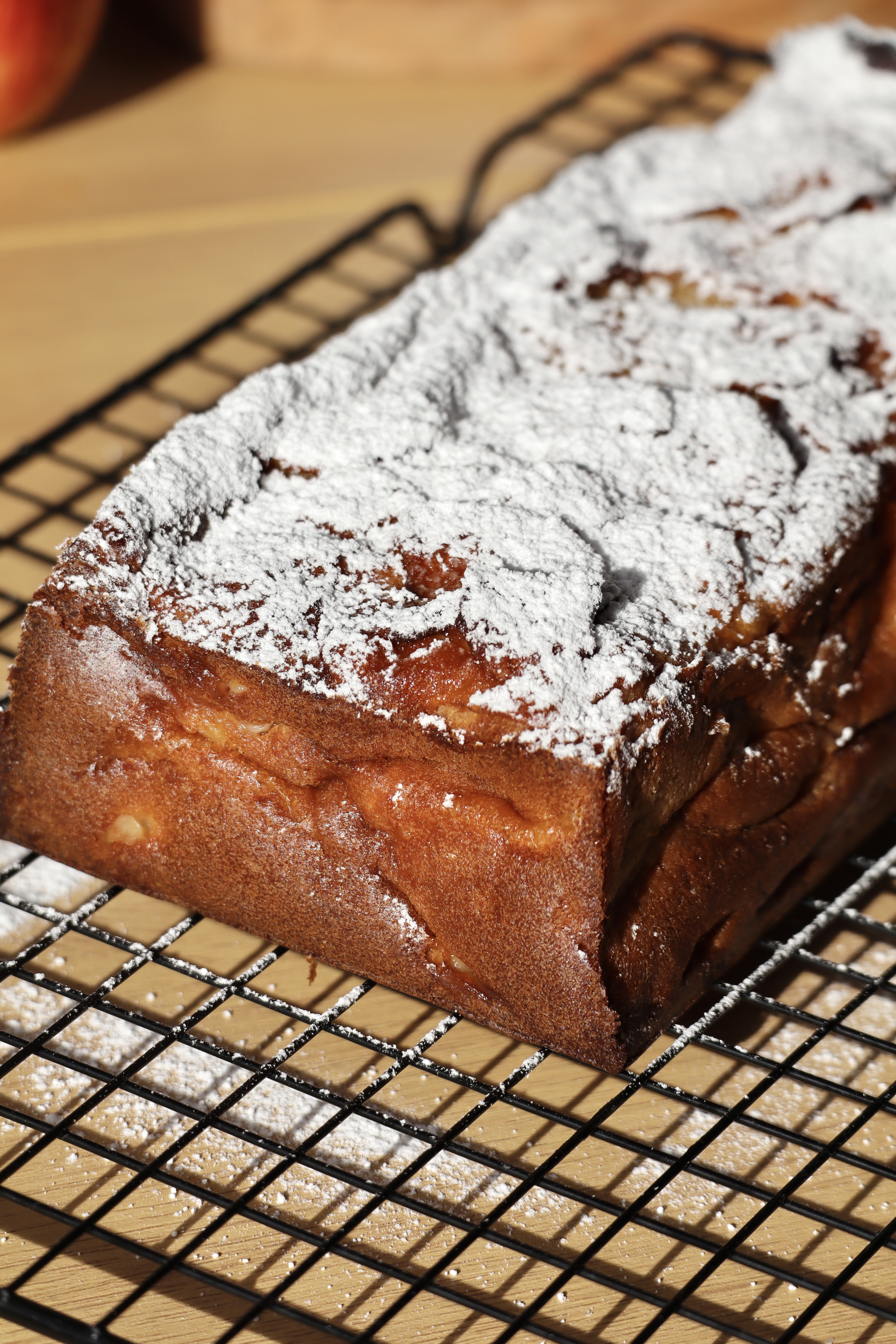 - Bake the cake: Pour the mixture into the prepared loaf pan, pressing down gently to layer the apples. Smooth the top and pour any remaining batter over the surface. Bake for about 75 minutes, or until the cake is golden brown around the edges and a toothpick inserted in the center comes out clean.