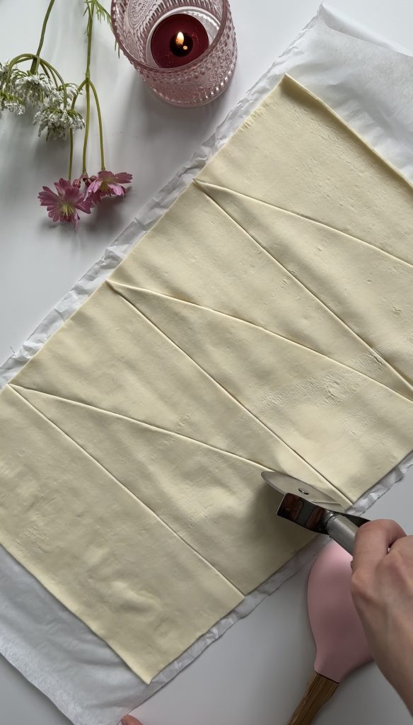 - Keep the Pastry Cold: Ensure the puff pastry remains cold while working with it. If it gets too warm, it becomes difficult to handle and won’t puff up as well during baking. If needed, chill the pastry in the fridge for 10-15 minutes before cutting.