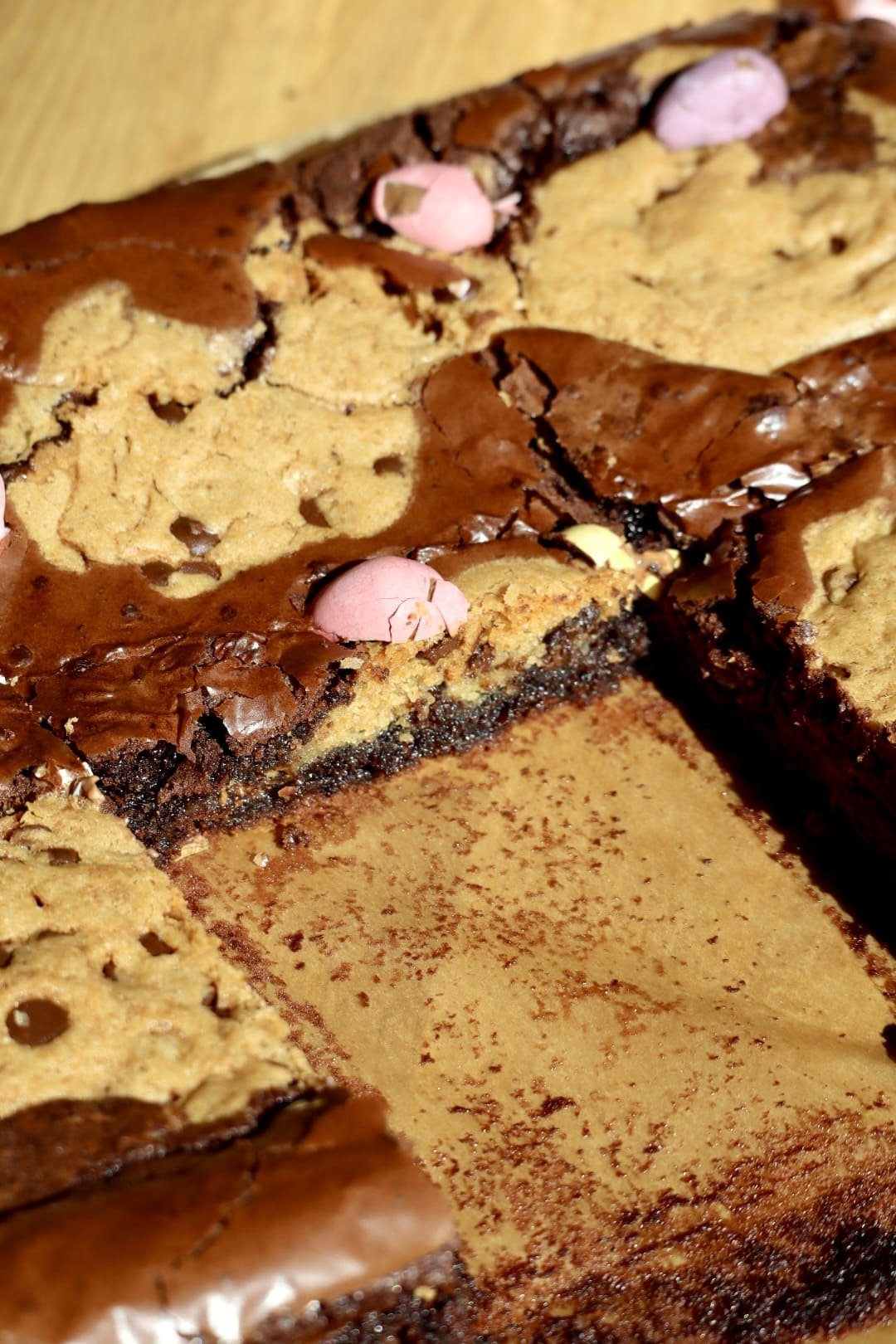 • Mini eggs – Adds a festive crunch and extra sweetness on top of the brookies.