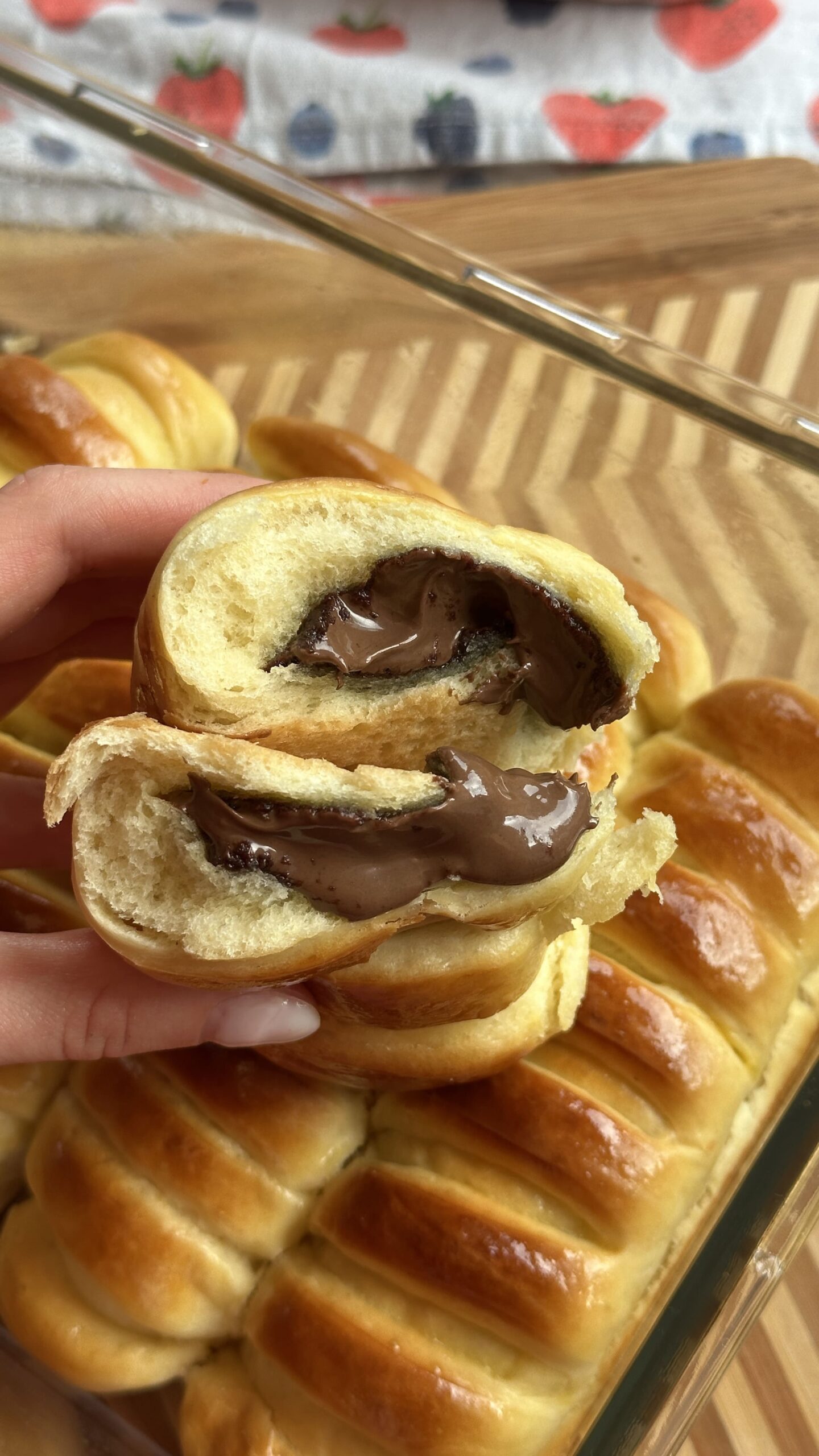- The result? A soft brioche with a gooey Nutella center, delicate layers, and a beautiful pattern that makes them perfect for sharing (or not).