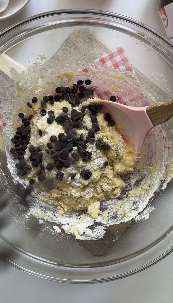 - Mix Batter: Fold the wet ingredients into the dry ingredients until just combined. Add chocolate chips and continue folding until no dry spots remain.