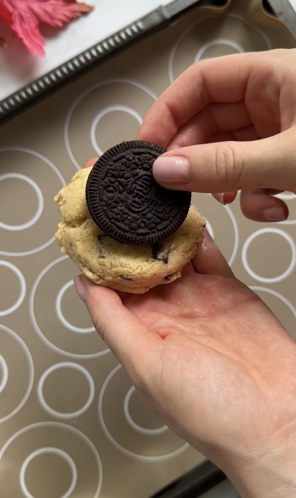 - Stuff the Oreos: After chilling, take a large ice cream scoop of cookie dough and flatten it slightly in your hand. Place an Oreo in the center and wrap the dough around it, ensuring that the Oreo is completely encased in dough.