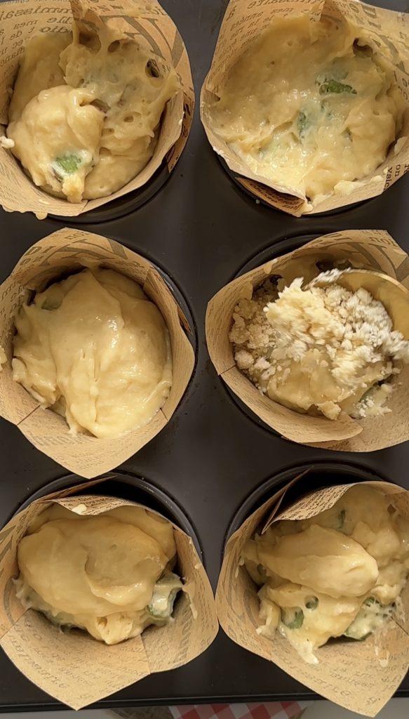 - Top Muffins: Sprinkle the crumble onto the muffins, pressing it down lightly.