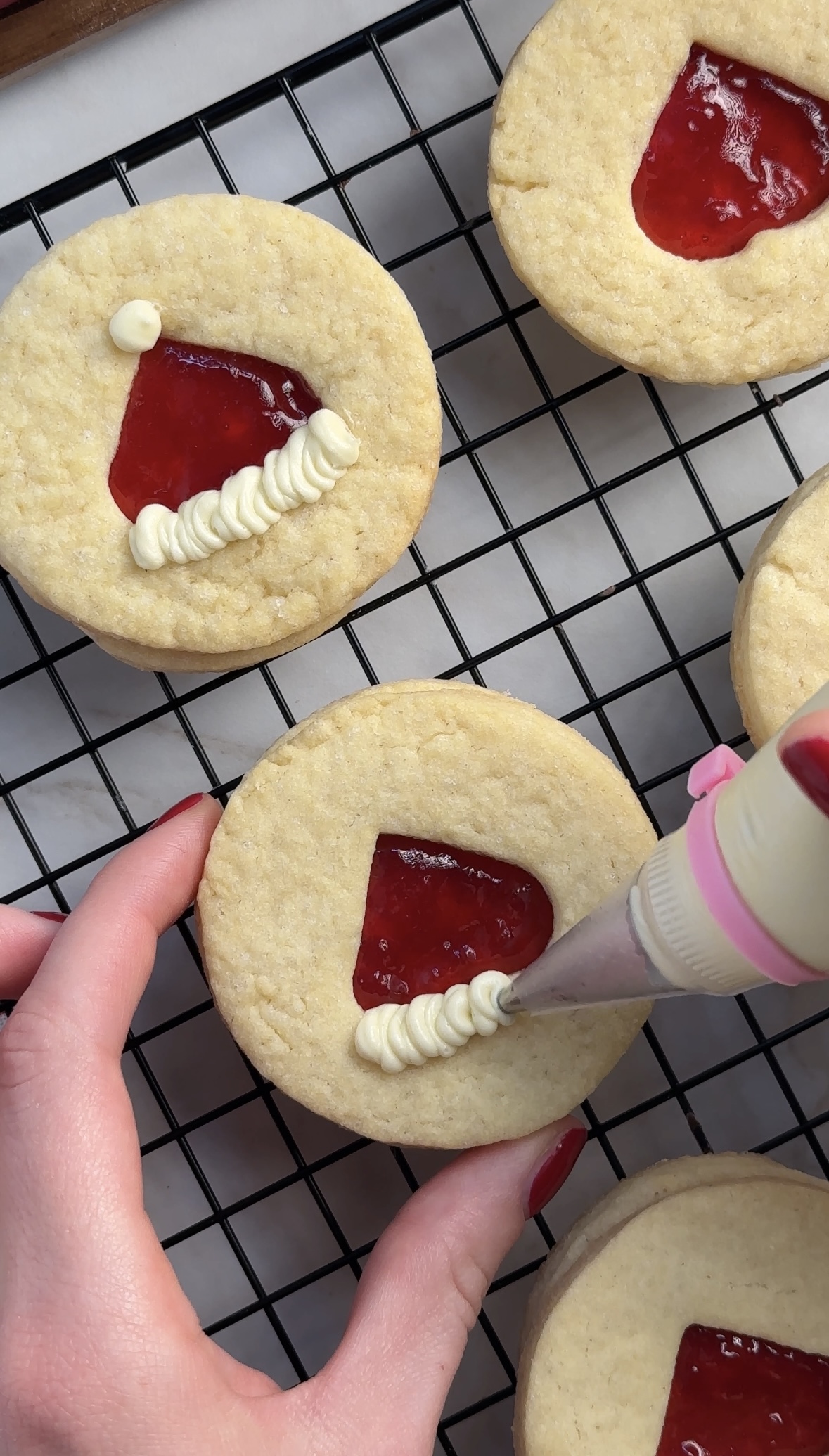 - Red Currant or Strawberry Jelly: Used as the filling between the cookies and provides the red color for the Santa hat.