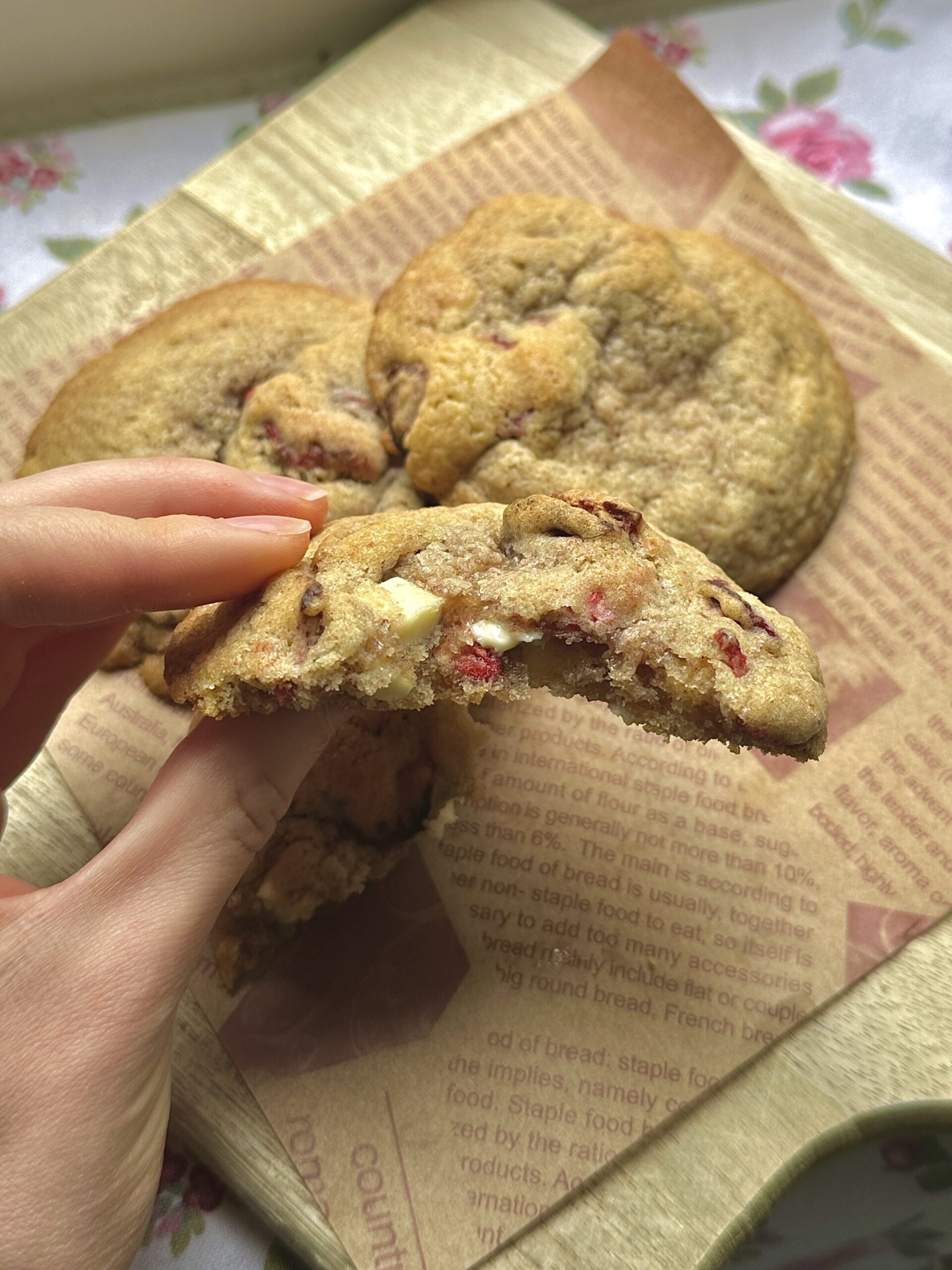 The combination of creamy white chocolate and tangy strawberries offers a refreshing twist on the classic cookie. Each bite is bursting with fruity flavor, complemented by the rich, smooth sweetness of the chocolate. Whether you’re baking for a summer gathering or simply treating yourself, these Strawberries & Cream Cookies are the ideal blend of indulgence and brightness. The freeze-dried strawberries ensure a concentrated flavor without adding extra moisture, keeping the cookies soft and chewy. Perfect with a cup of tea or coffee, they make a fantastic snack or dessert any time of year!