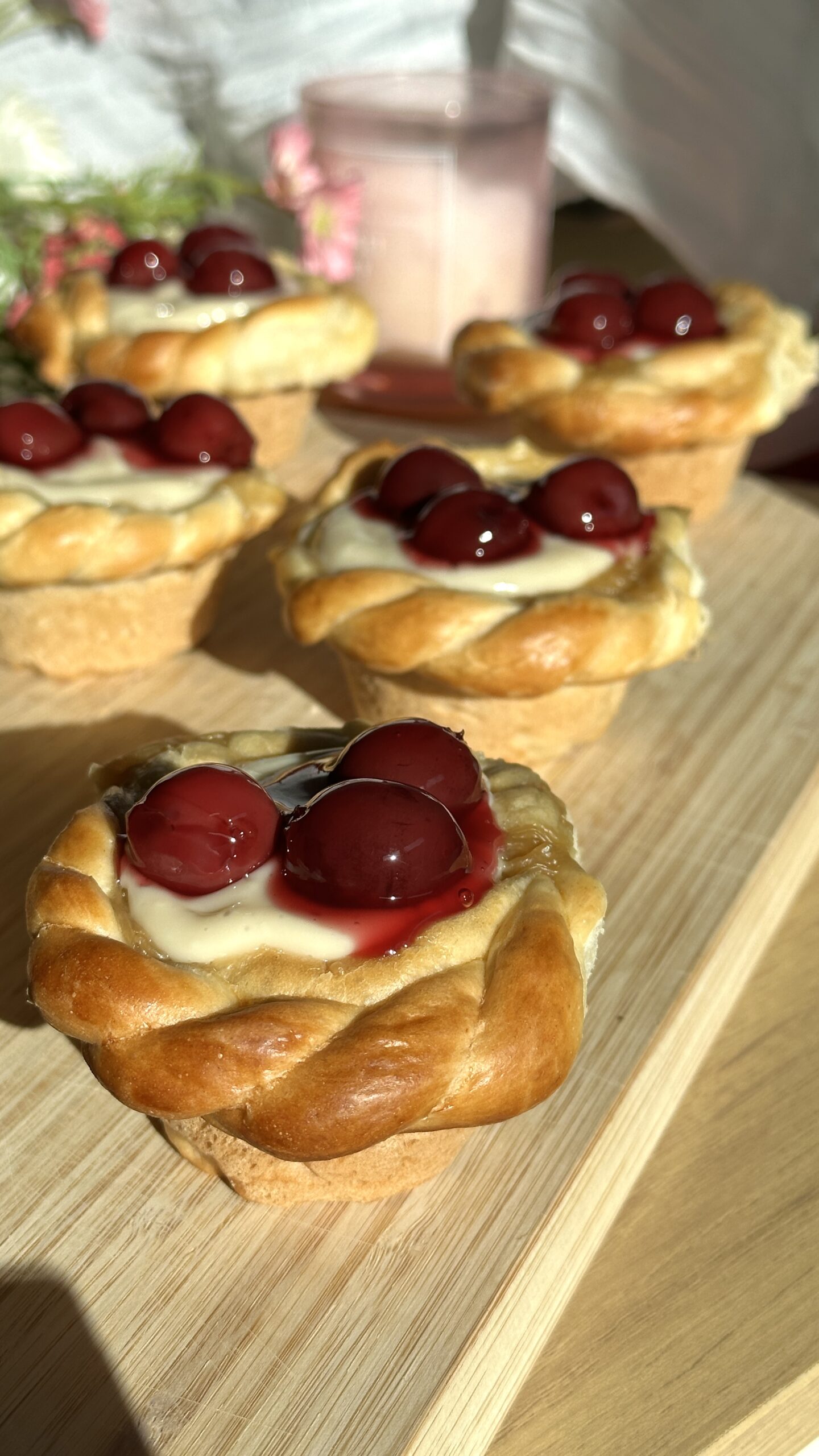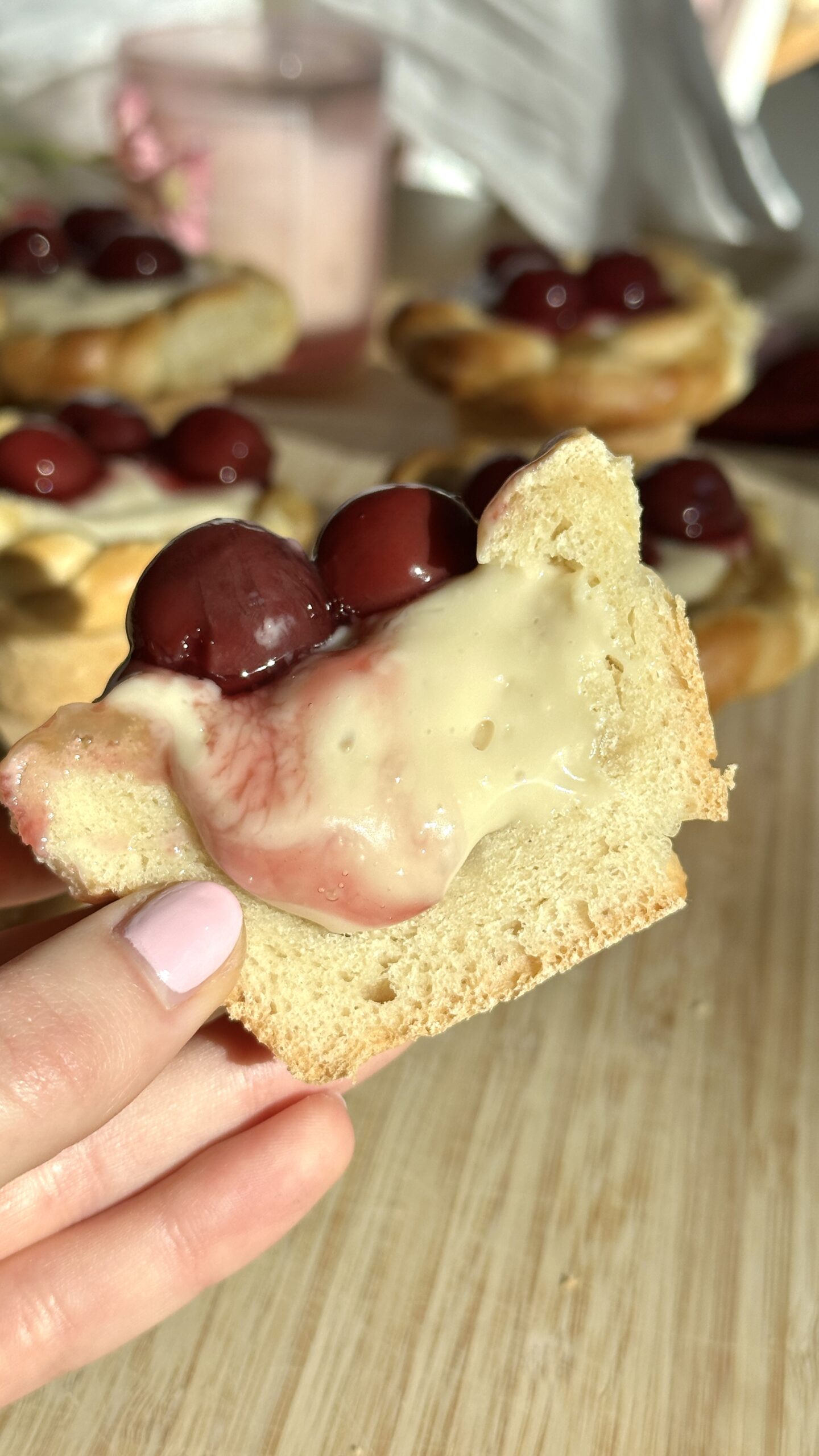 • Cherries: Add freshness and gentle acidity, balancing the sweetness of the custard and dough.
