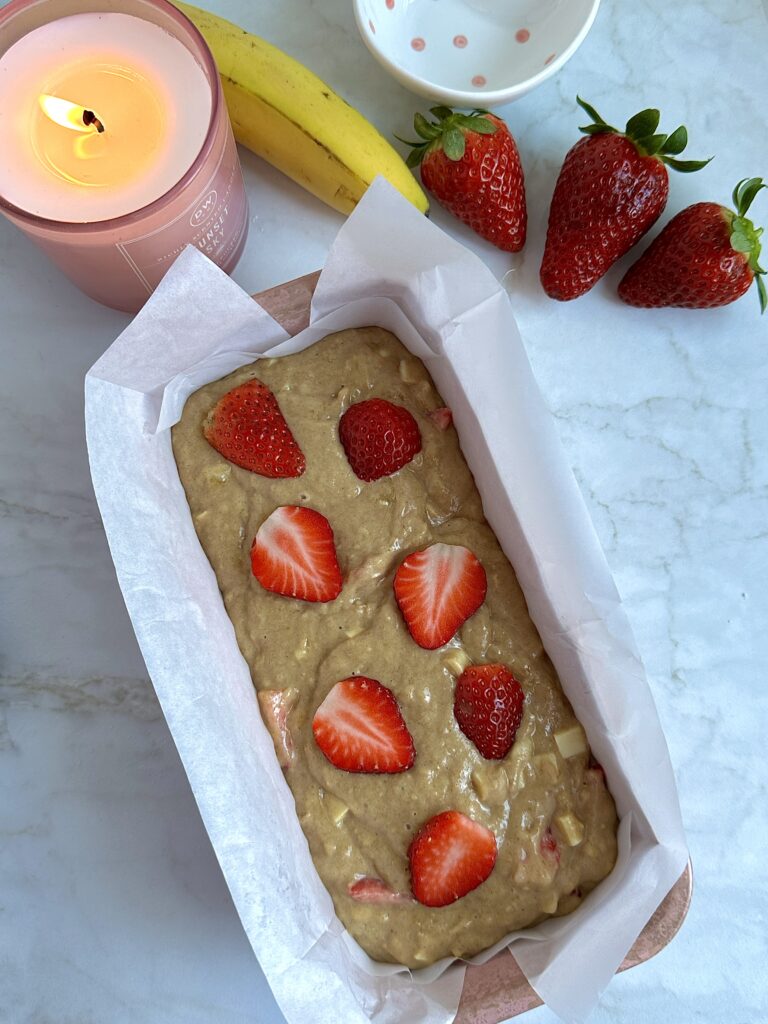 - Transfer to the Tin: Pour the batter into the prepared loaf tin, spreading it evenly. For extra flair, you can sprinkle a few more white chocolate chips or strawberry pieces on top.